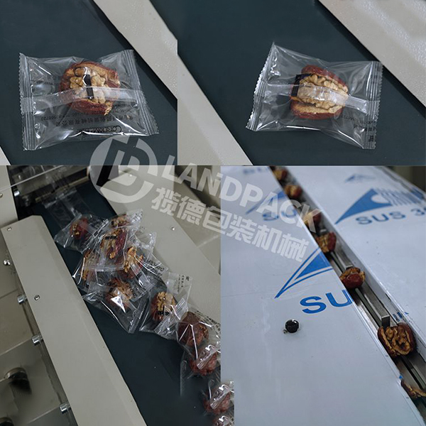 這款單粒紅棗包裝機(jī)比較好的地方是采用人工進(jìn)行投放物料,操作人員把單個(gè)紅棗擺放到傳送袋上面,一個(gè)一個(gè)輸送過(guò)去,可以保證紅棗不會(huì)移位,包裝出來(lái)的紅棗樣式比較好看。同時(shí)這臺(tái)機(jī)器的速度是可以根據(jù)人工的投放物料速度而改變的,投料快,包裝速度就可以加快,投放物料慢,也可以手動(dòng)調(diào)節(jié)機(jī)器包裝速度變慢。人工放料快的話,大概一分鐘可以包裝100顆紅棗。